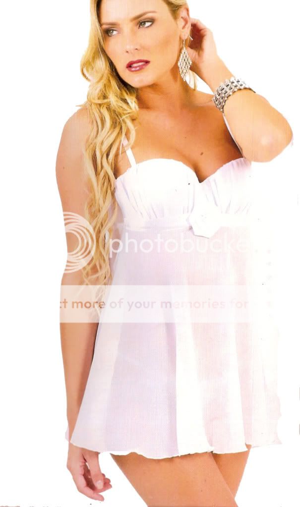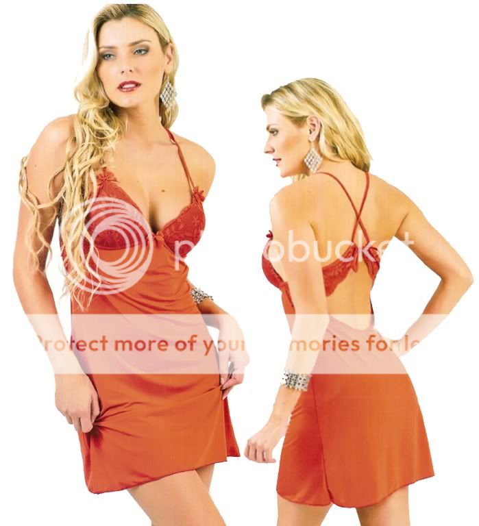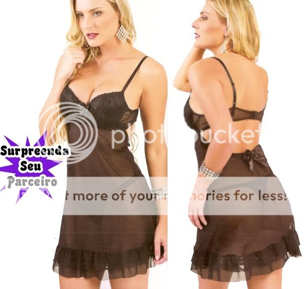 Em chifon, com detalhe de fita cetim com uma rosa no decote,