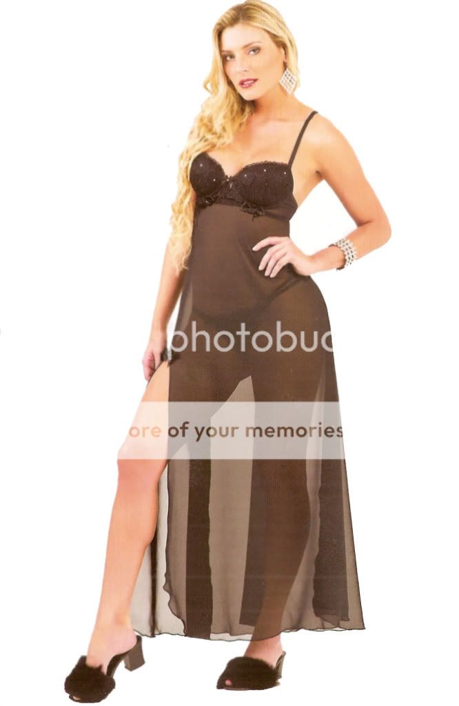 Em chifon, com detalhe de strass no bojo e abertura frontal,