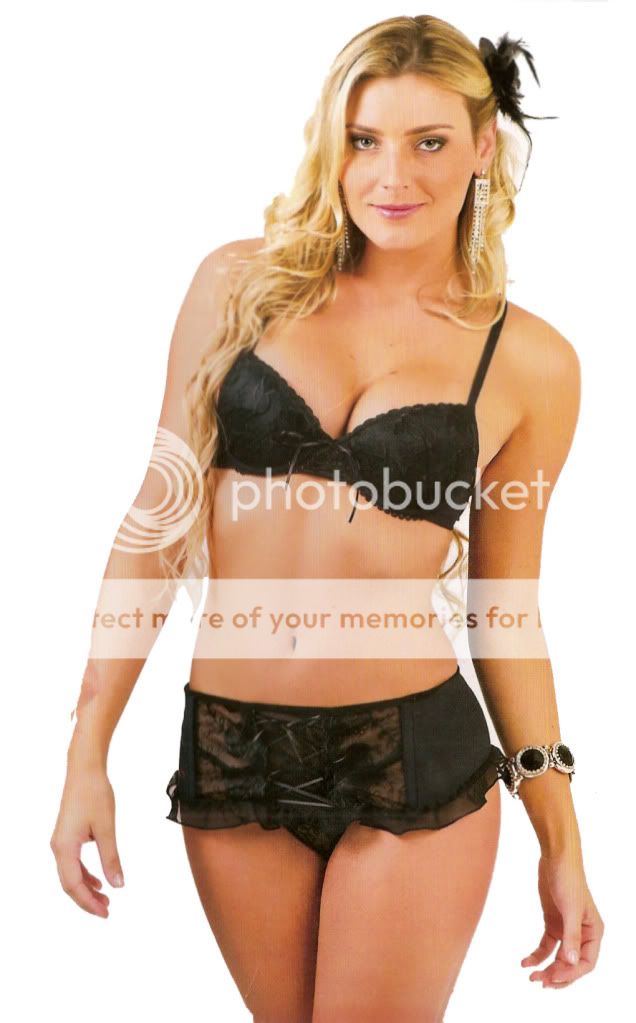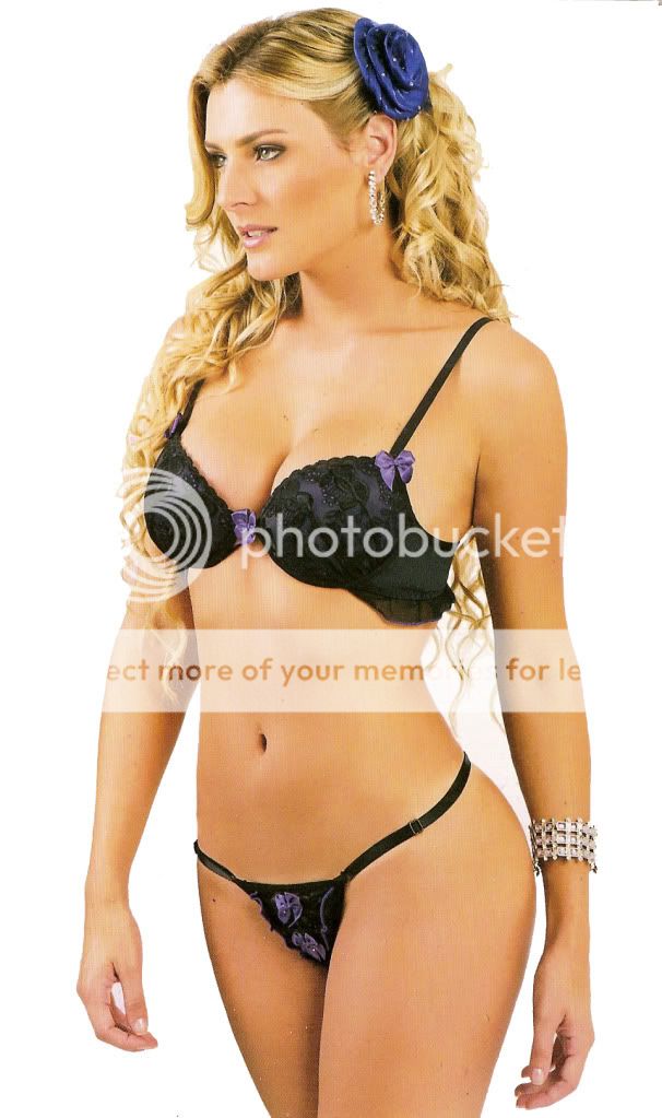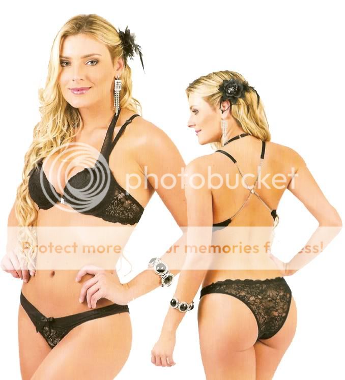 1 tanga de renda com detalhe de lacinho de cetim preto